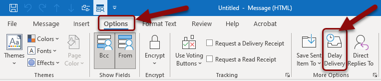 Lastly, you may have an option under the “options” tab to just select “delay delivery.”