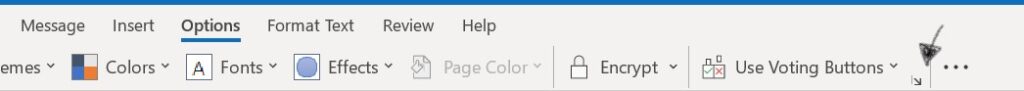 1.While composing a message, select the More options arrow from the Tags group in the Ribbon.